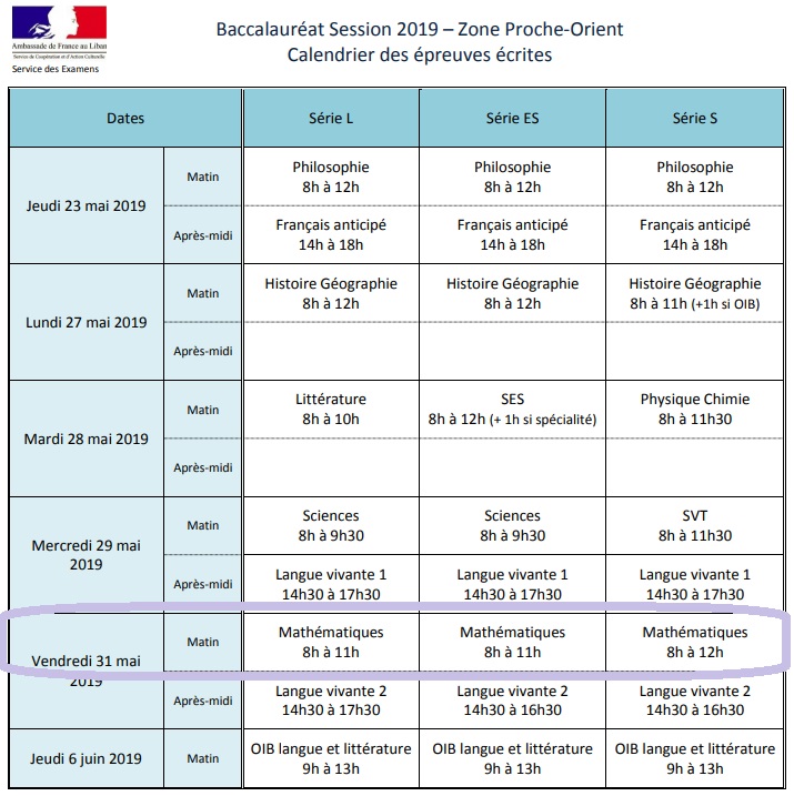Calendrier bac francais 2019 liban. Sachez que le planning des épreuves du bac 2020 est enfin connu. Calendrier des examens officiels libanais calendrier des épreuves écrites diplome national du brevet dnb session juin 2020 calendrier des épreuves écrites baccalauréat français session 2020. Avec 91 5 d admis le taux de réussite explose tous les records épreuves calendrier coefficients. Listes des manuels scolaires et fournitures 2020 2021.