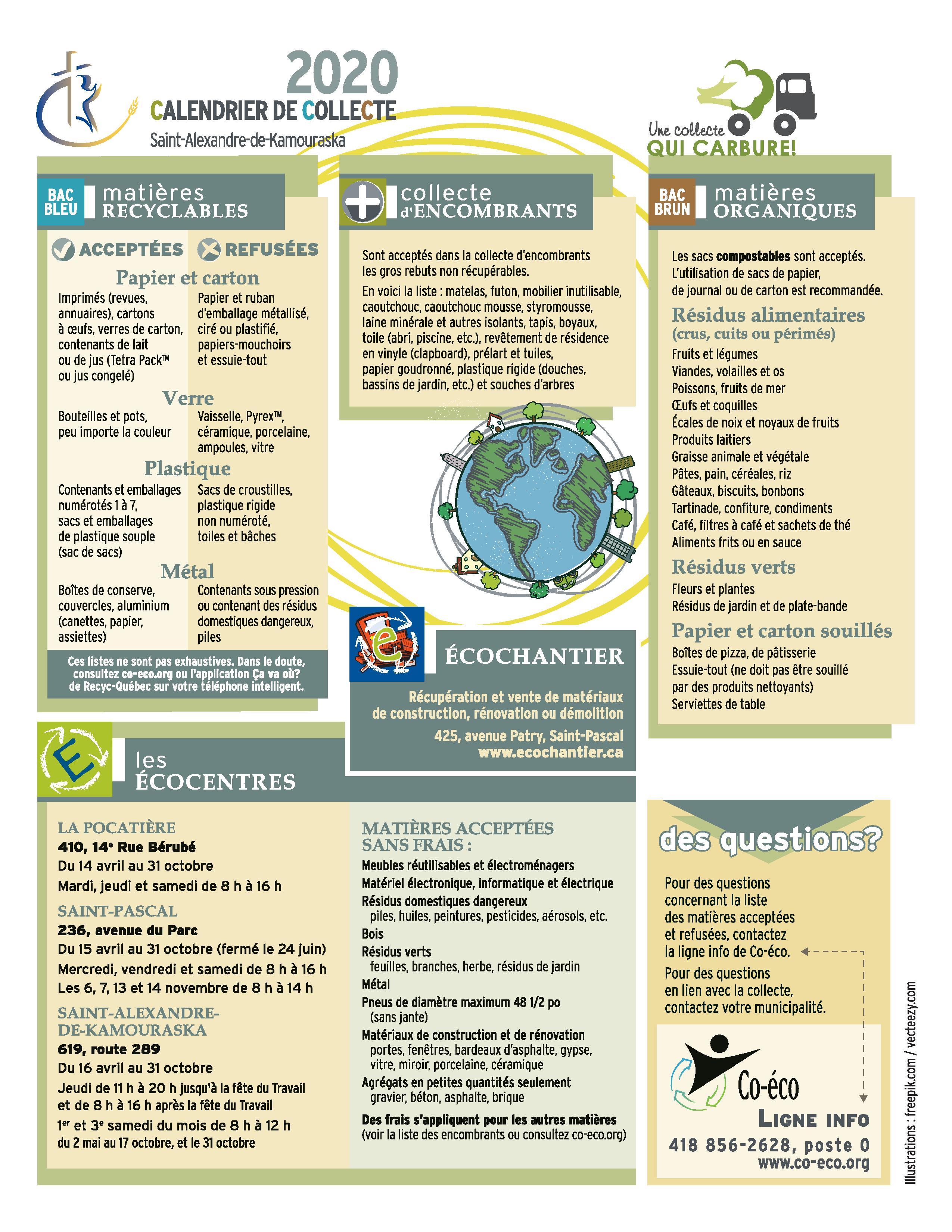 Calendrier Des Collectes Municipalite De Saint Alexandre De
