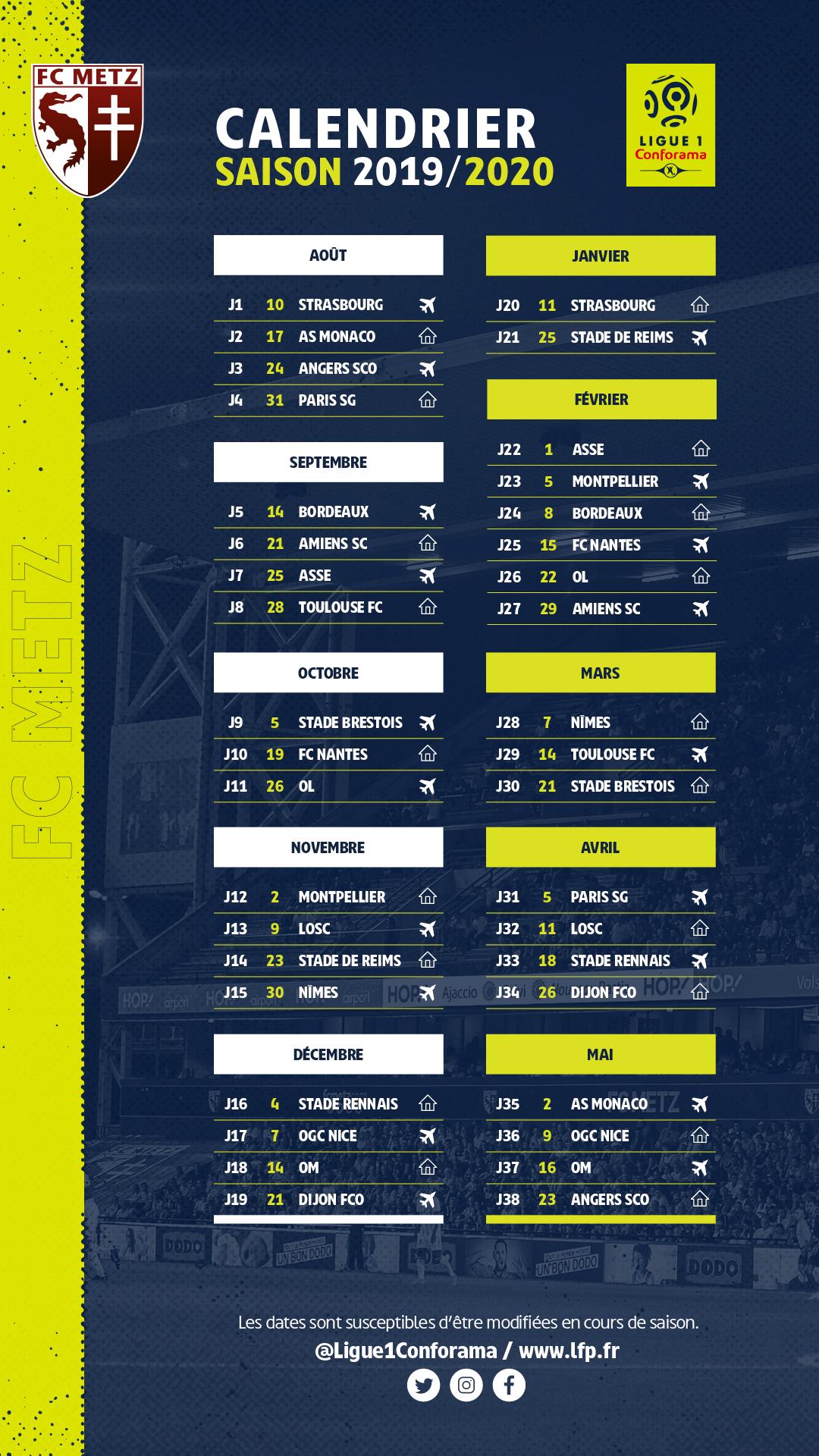 Calendrier ligue 1 2020 metz. Voici le programme du fc metz. Site officiel du fc metz. Calendrier ligue 1 2019 2020 fc metz 10 mois ago. La lfp a dévoilé ce jeudi le calendrier complet de la prochaine saison 2020 21 de ligue 1.
