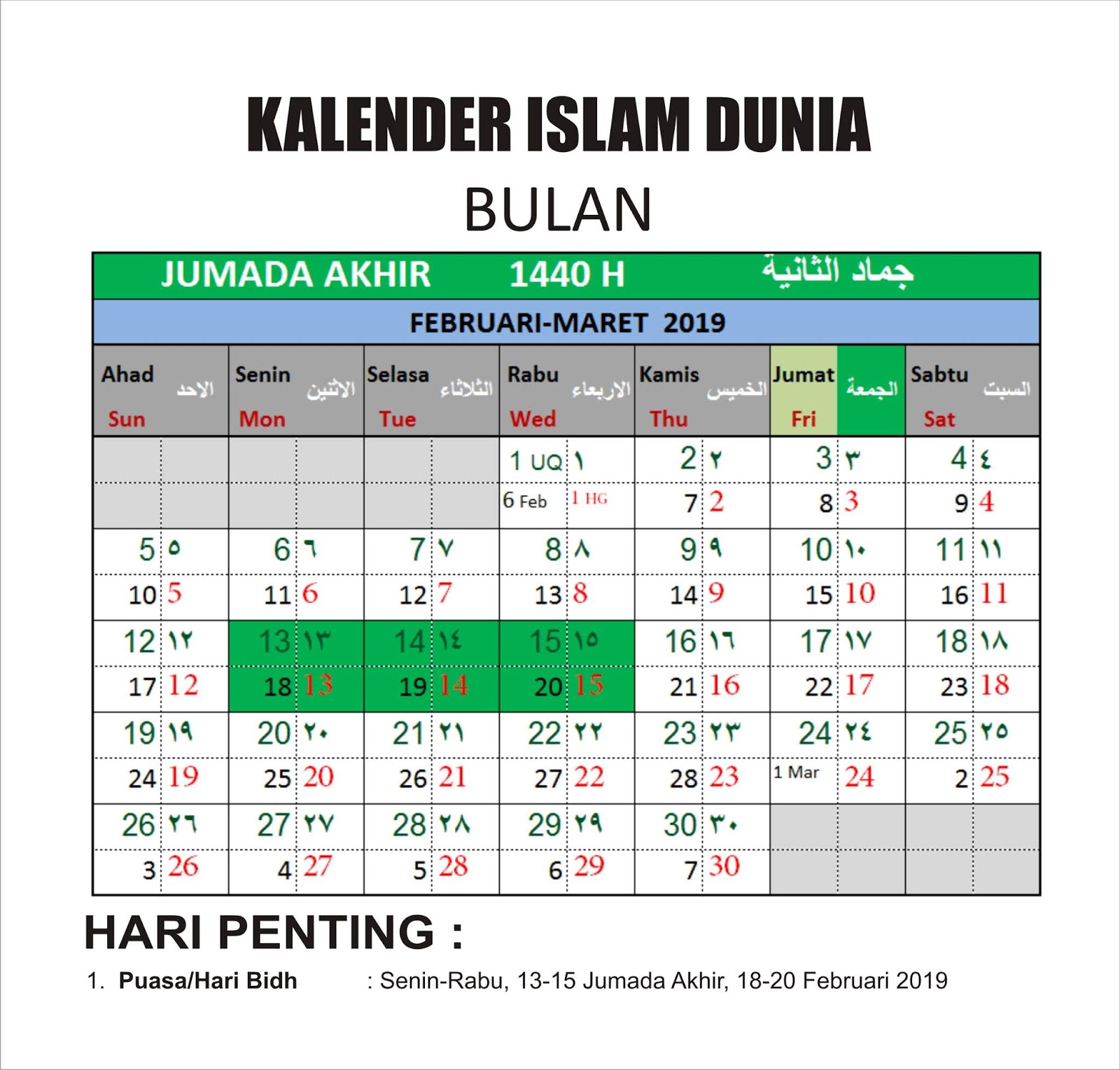 Kalender Islam Bersatu Bulan Jumada Akhir Tahun 1440 H Hikmah 313