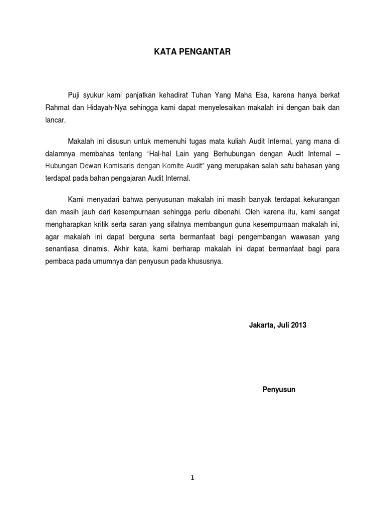 Materi komite audit. Yahya harahap dalam bukunya hukum perseroan terbatas hal. Audit committee consists of independent professionals and is chaired by an independent commissioner. Menurut penjelasan pasal 121 ayat 1 undang undang nomor 40 tahun 2007 tentang perseoran terbatas uupt komite audit merupakan salah satu jenis komite yang dibentuk oleh dewan komisaris. Komunikasi dengan komite audit meliputi masalah masalah berikut.