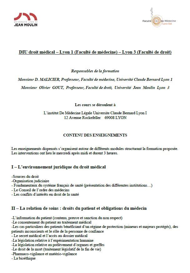 D I U Droit Medical Universite Jean Moulin Lyon 3